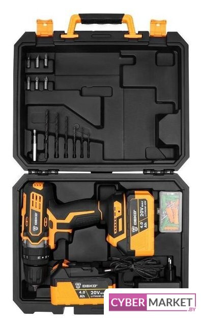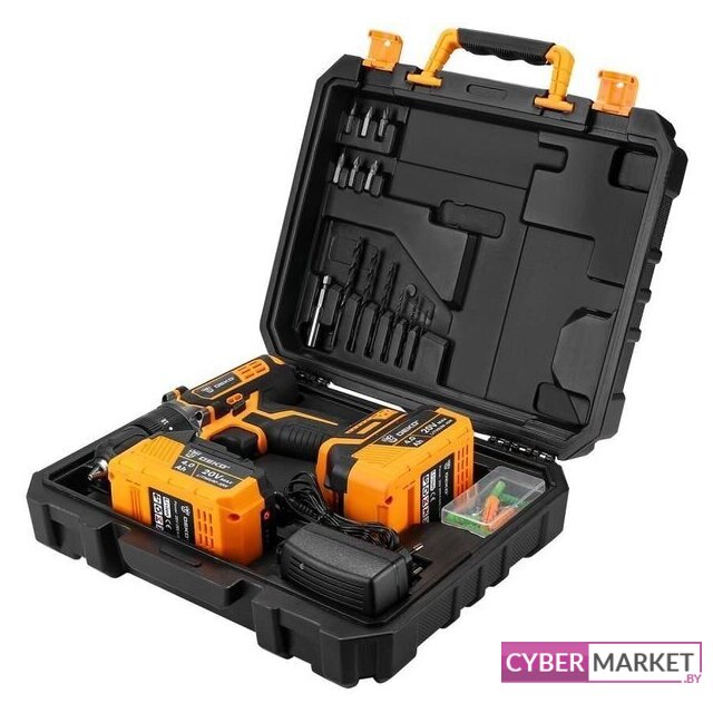 | Комплектация | Дрель-шуруповерт ударная - 1 шт.Аккумулятор 4,0 Ач - 2 шт.Зарядное устройство - 1 шт.Сверла (2, 2.5, 3, 4, 5, 6 мм) - 6 шт.Биты (SL4, 6, PH1, 2, PZ1, 2) - 6 шт.Магнитный удлинитель (60 мм) - 1 шт.Крепеж - 50 шт.ИнструкцияКейс |