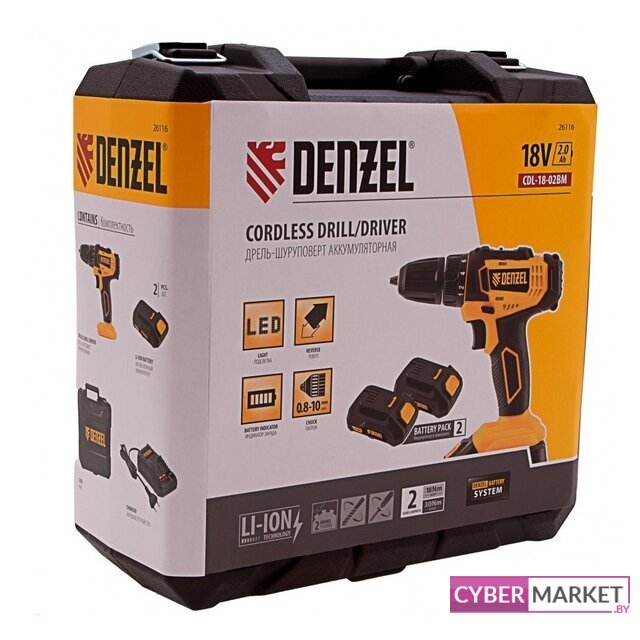 дрель-шуруповерт, аккумулятор 18V, Li-ion, патрон быстрозажимной, 2 скорости, режимы: сверление/шуруповерт
