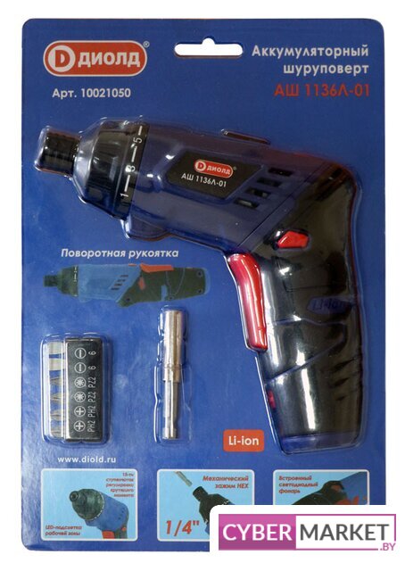электроотвертка, питание: аккумулятор, 210 об/мин, напряжение аккумулятора: 3.6 В, ёмкость аккумулятора: 1.3 А·ч, 500 г