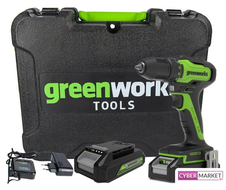 | Комплектация | Дрель-шуруповертАккумулятор Greenworks 24V 2АчЗарядное устройство слайдер (0,5 А)Пластиковый кейсРуководство по эксплуатации |