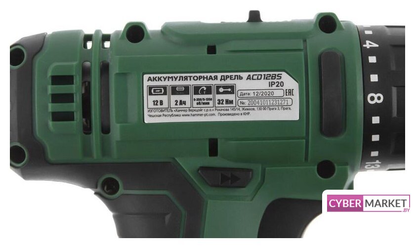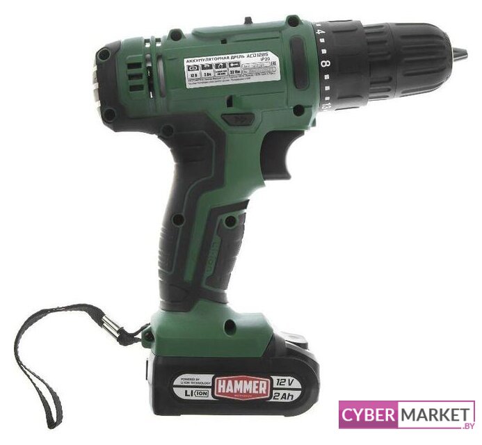 дрель-шуруповерт, аккумулятор 12V, Li-ion, патрон быстрозажимной, 2 скорости, режимы: сверление/шуруповерт