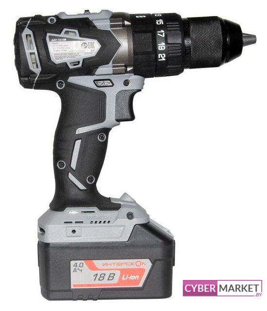 ударный шуруповерт, аккумулятор 18V, Li-ion, патрон быстрозажимной, 2 скорости, режимы: сверление/сверление с ударом/шуруповерт