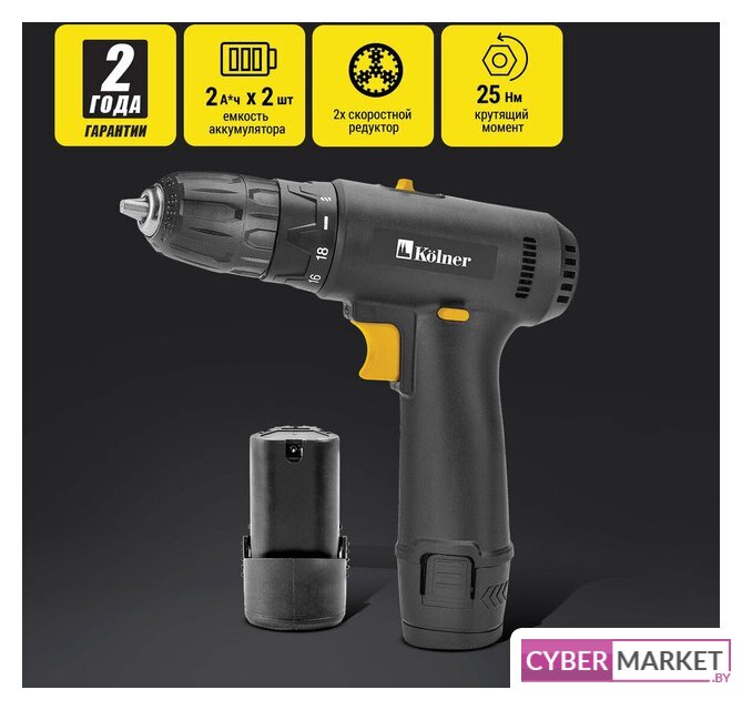 дрель-шуруповерт, аккумулятор 12V, Li-ion, патрон быстрозажимной, 2 скорости, режимы: сверление/шуруповерт