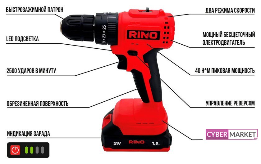| Комплектация | - Дрель- Зарядное устройство- Аккумулятор- Руководство пользователя |