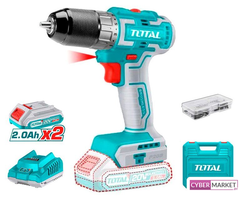 | Комплектация | Дрель-шуруповерт - 1 шт.Аккумулятор 2,0 А*ч - 2 шт.Быстрое интеллектуальное зарядное устройство - 1 шт.Аксессуары - 47 шт.ИнструкцияКейс |