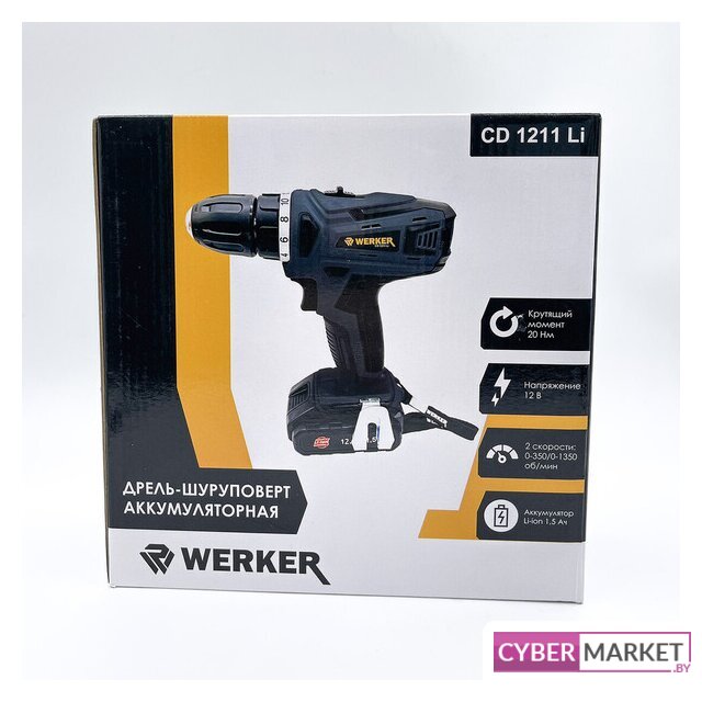 дрель-шуруповерт, аккумулятор 12V, Li-ion, патрон быстрозажимной, 2 скорости, режимы: сверление/шуруповерт
