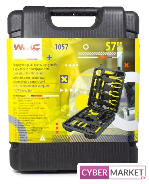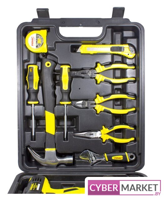 | Комплектация | - Шуруповерт;- 1 АКБ;- Сверла - 10шт;- Пилы кольцевые - 4шт;- Биты 50мм - 10шт;- Биты 25мм - 20шт;- Магнитный держатель бит;- Переходник с центрирующим сверлом;- Шестигранный ключ;- Утконосы 150мм;- Кусачки 150мм;- Пассатижи 150мм;- Ключ разводной 150мм;- Молоток;- Отвертка - 2шт;- Рулетка 3м;- Нож. |
