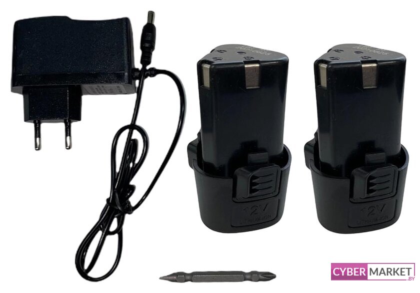| Комплектация | Дрель-шуруповерт - 1 штЗарядное устройство - 1 штАккумулятор - 2 штБита - 1 штИнструкцияКейс |