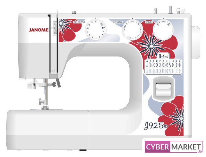электронная, горизонтальный ротационный челнок, автоматическое выполнение петли, швейные операции: имитация оверлочной строчки/потайная строчка/трикотажная строчка/декоративная строчка/алфавит (латиница)/алфавит (кирилица)
