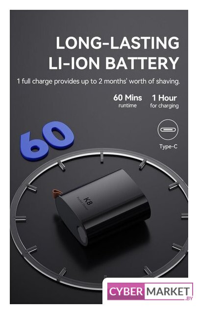 роторная, сухое и влажное (с пеной) бритье, питание от АКБ, 45 минут автономной работы