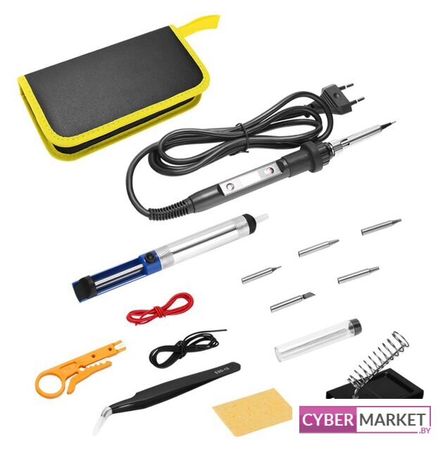 | Комплектация | - Паяльник цифровой 80 Вт, 220 В- Комплект из 5 типов наконечников (конус, игла, клин, скос, ножевидное)- Держатель для паяльника- Губка для очистки паяльного жала- Пинцет- Оловоотсос для припоя- Нож для снятия изоляции- Припой- Провода 2 шт- Пенал на молнии |