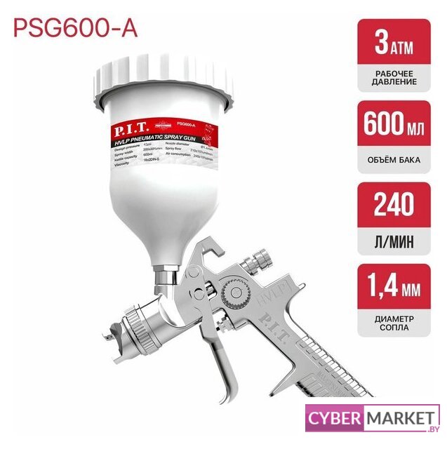 HVLP, расход воздуха: 180 л/мин, 3.5 бар, сопло: 1.4 мм, бачок: 600 мл, 900 г