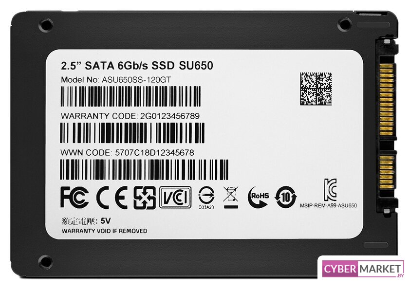 256 ГБ, 2.5", SATA 3.0, последовательный доступ: 550/490 МБайт/с, случайный доступ: 40000/50000 IOps