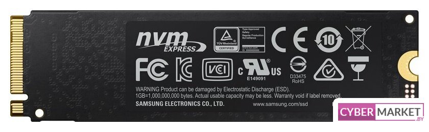 250 ГБ, M.2, PCI Express 3.0 x4, контроллер Samsung Phoenix, микросхемы 3D TLC NAND