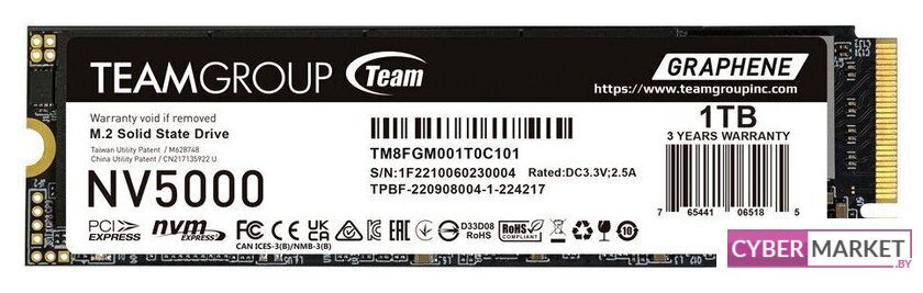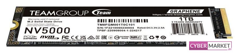 1 ТБ, M.2 2280, PCI Express 4.0 x4 (NVMe), последовательный доступ: 7400/6500 МБайт/с, случайный доступ: 650000/650000 IOps, совместимость с PS5