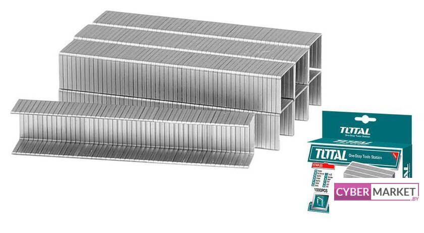 скобы, П-образная форма, сталь, ножки без заточки, серебристый цвет, 1000 шт.