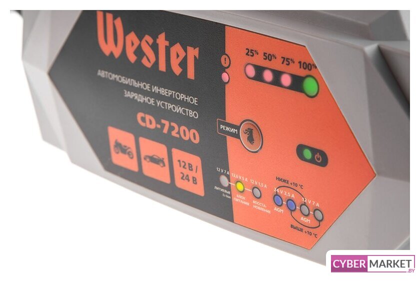 ёмкость заряжаемой батареи: 28–180 А·ч, ток зарядки: 4–9 А, масса: 6 кг