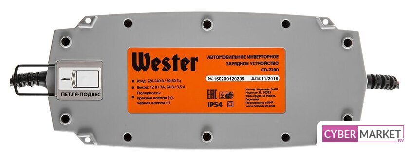 ёмкость заряжаемой батареи: 6–160 А·ч, ток зарядки: 2–8 А, масса: 0.8 кг