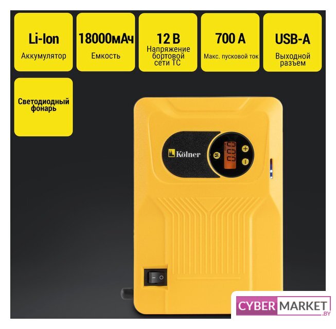 ёмкость встроенного аккумулятора: 16000 мА·ч, максимальный пусковой ток: 800 А, масса: 0.6 кг