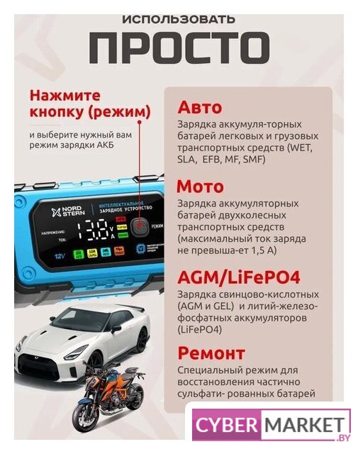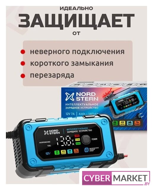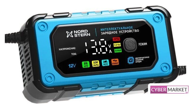 ёмкость заряжаемой батареи: 4–140 А·ч, ток зарядки: 0.8–6 А, масса: 0.4 кг