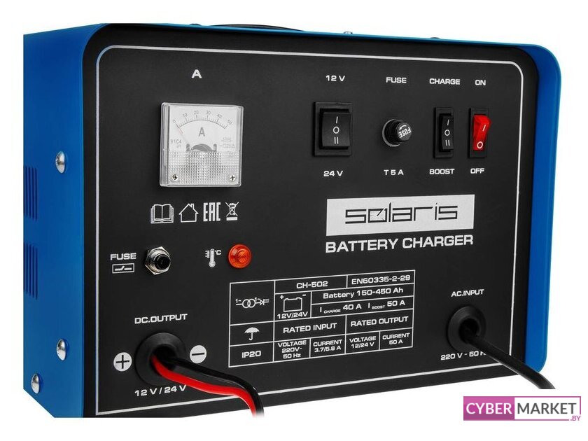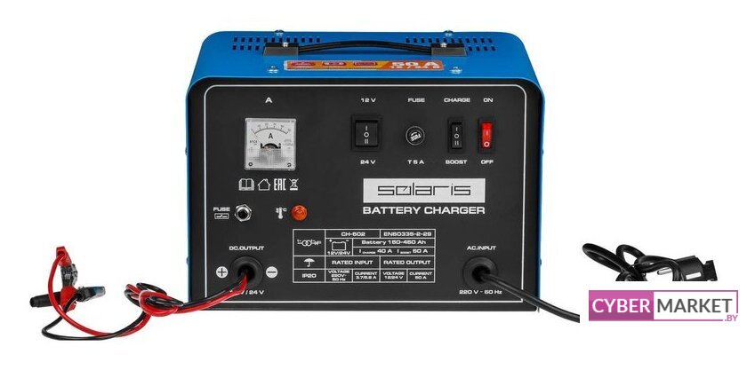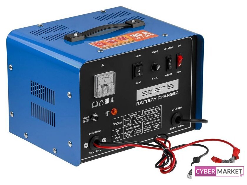 ёмкость заряжаемой батареи: 6–160 А·ч, ток зарядки: 2–8 А, масса: 0.8 кг
