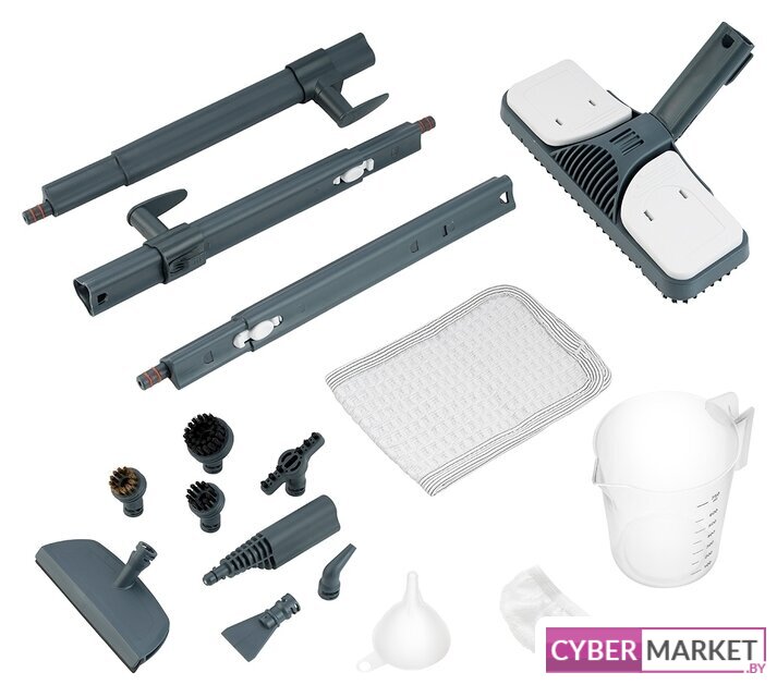 | Дополнительные насадки и приспособления | угловая насадка, плоская ворсовая щетка, большая и маленькая нейлоновые щетки, латунная щетка, мерный стакан, воронка, скребок |