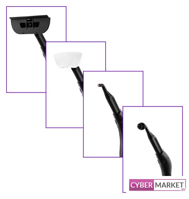 | Дополнительные насадки и приспособления | - тряпка для отпаривания;- латунная щетка;- тряпка для пола;- насадка для отпаривания;- рамка для ковра;- мерный стакан;- круглая нейлоновая щетка;- ремень;- запасные уплотнительные кольца;- колпачок на паровое сопло. |