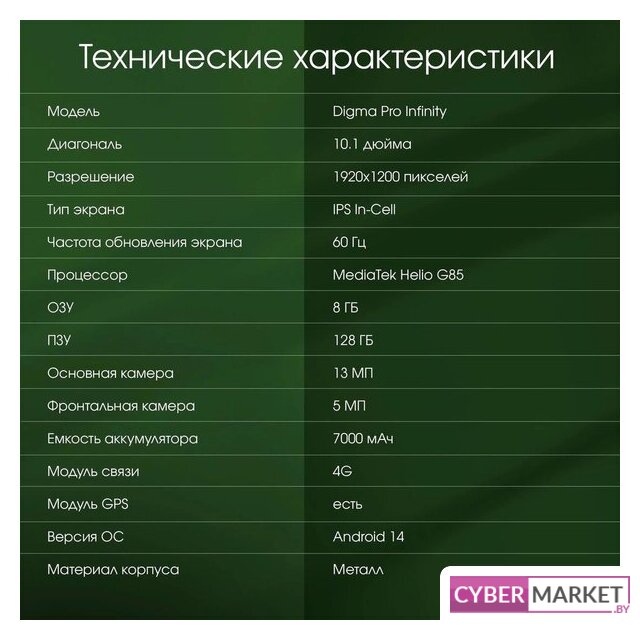 11.0" IPS, 60 Гц (1920x1200), Android, UniSoC Tiger T616, 8 ГБ / 256 ГБ, Wi-Fi + сотовая связь (nanoSIM + nanoSIM), аккумулятор 7700 мАч