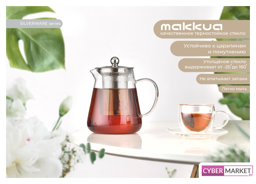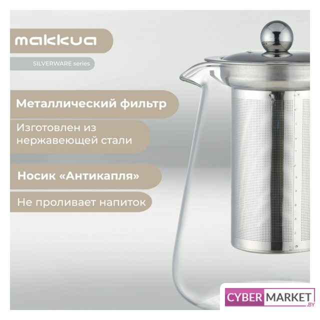 заварочный чайник, материал: стекло, 800 мл, цвет: прозрачный