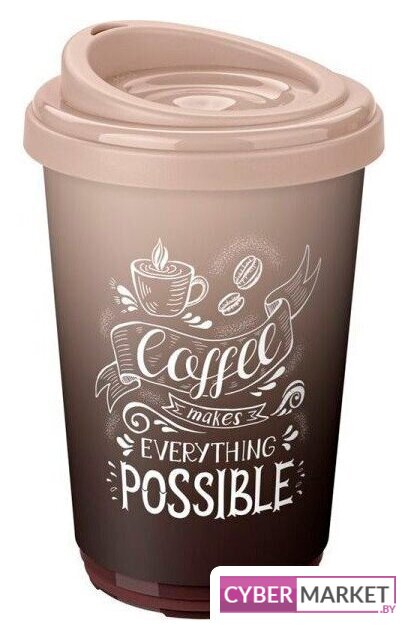 многоразовый стакан, 0.3 л, колба: пластик, корпус: пластик, цвет бежевый/цветной принт