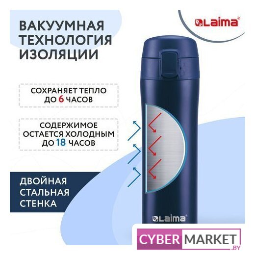 термокружка, 0.38 л, до 8 ч, колба: сталь, корпус: сталь, цвет синий