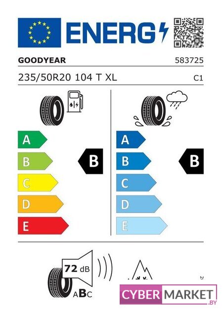 для минивенов и кроссоверов/внедорожников, без шипов, индекс скорости: H (до 210 км/ч), индекс нагрузки: 109 (1030 кг), евроэтикетка: B/B/73 дБ