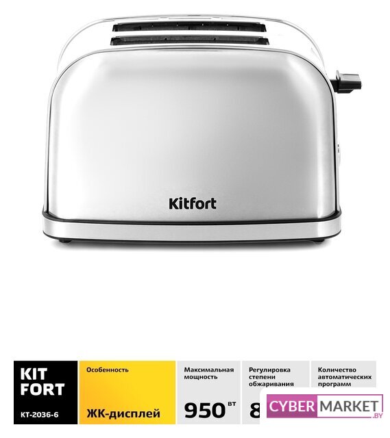 950 Вт, количество тостов: 2, корпус: металл, 7 степеней обжаривания, цвет белый/нержавеющая сталь