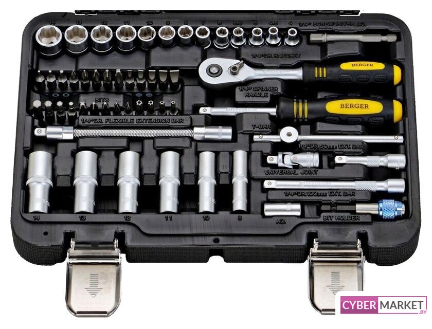 | Комплектация | - 13 шт.: 1/4" Головки торцевые 6-гранные Super Lock: 4, 4.5, 5, 5.5, 6, 7, 8, 9, 10, 11, 12, 13, 14 мм- 6 шт.: 1/4" Головки торцевые длинные 6-гранные Super Lock: 8, 10, 11, 12, 13, 14 мм- 1 шт.: 1/4" Вороток Т-образный: 110 мм- 1 шт.: 1/4" Трещотка (ключ трещоточный с быстрым сбросом): 45 зубов- 2 шт.: 1/4" Удлинитель: 50, 100 мм- 1 шт.: 1/4" Гибкий удлинитель: 150мм- 1 шт.: 1/4" Кардан шарнирный- 1 шт.: 1/4" Отвертка с присоединительным квадратом- 1 шт.: 1/4" Адаптер для бит- 26 шт.: 1/4" Набор бит:Ph (крест): 0, 1, 2, 3, 2 Pz (позидрайв): 0, 1, 2, 3, 2TORX (звёздочка): T15, T20, T25, T27SLOT (шлиц): 3, 4, 5, 6, 7HEX (шестигранник): 1.5, 2, 2.5, 3, 4, 5, 6- 1 шт.: 1/4" Держатель для бит магнитный- 1 шт.: 1/4" Адаптер для шуруповерта |