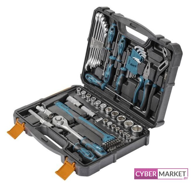 | Комплектация | Головки 1/2" (11 шт) Головки 1/4" (8 шт) Головка торцевая свечная, 1/2" (2 шт) Шарнир карданный 1/2 (1 шт) Удлинитель 1/2":125 мм (1 шт) Рукоятка с трещеткой квадрат 1/2 (1 шт) Ключ комбинированный (7 шт) Ключ шестигранный (9 шт) Плоскогубцы 160мм (1 шт) Ключ разводной (1 шт) Отвертка (5 шт) Молоток (1 шт) Переходник для торцевых головок (1 шт) Биты 1/4 (33 шт) Отвертка для бит (1 шт) |