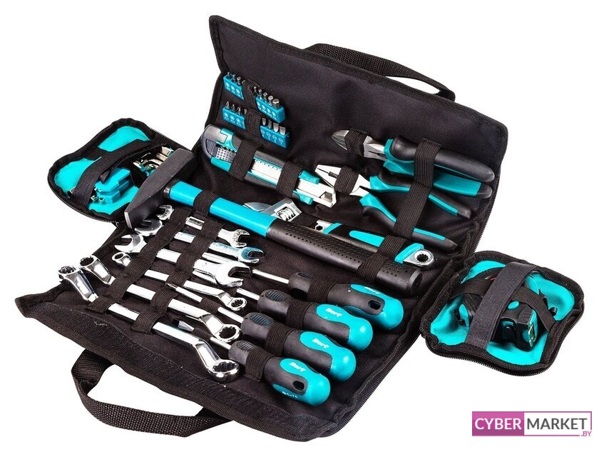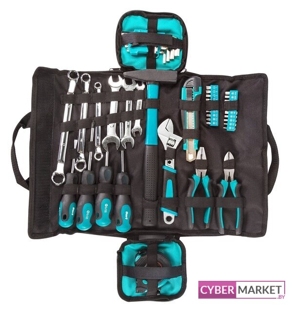 | Комплектация | Рулетка 5мКлюч имбусовый 9 шт. размер 1,5; 2; 2,5; 3; 4; 5; 6; 8; 10 ммОтвертка 75 мм (SL)Отвертка 100 мм 2 шт. (SL; PH2)Отвертка-держатель для бит 100 ммКлюч гаечный рожковый 3 шт. размер 8/10, 12/14, 13/17 ммКлюч гаечный накидной 3 шт. размер 8/10, 12/14, 14/17 ммМолоток слесарный вес 300 гКлюч разводной 210 мм, максимальный развод губок 25 ммПлоскогубцы 160 ммБокорезы 160 ммБита 25 мм 20 шт. (PZ1, PZ2, PZ3, SL1/8, SL3/16, SL1/4, SL4, SL5, SL6, SL7, H2-H6, H3/32, H1/8, H5/32, H3/16, h1/4)Нож |