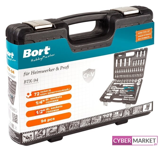 | Комплектация | Биты 25mm 16шт (3, 4, 5, 6, 7, PH0, PH1, PH2, PH3, PZ0, PZ1, PZ2, PZ3, T10, T15, T20, T25, T30, T40, H2, H3, H4, H5, H5.5, H6, AD)Вороток Т-образный 1/4"Вороток-отверткаГоловка торцевая удлиненная 1/2" 4шт (14, 15, 17, 19)Головка торцевая удлиненная 1/4" 8шт (6, 7, 8, 9, 10, 11, 12, 13)Головки 1/2" 18шт (10, 11, 12, 13, 14, 15, 16, 17, 18, 19, 20, 21, 22, 23, 24, 27, 30, 32)Головки 1/4" 13шт (4, 4.5, 5, 5.5, 6, 7, 8, 9, 10, 11, 12, 13, 14)Головки торцевые 1/4" со вставками-битами 17шт (4, 5.5, 7, PH1, PH2, PZ1, PZ2, T8, T10, T15, T20, T25, T30, H3, H4, H5, H6)Головки торцевые свечные 1/2" 2шт (16, 21)Держатель для битКлюч трещеточный 1/2"Ключ трещеточный 1/4"Ключ шестигранный 3шт ( 1.5; 2; 2.5)Переходник для битУдлинитель 1/2" 125ммУдлинитель 1/2" 250 ммУдлинитель 1/4" 100 ммУдлинитель 1/4" 50 ммУдлинитель гибкий 1/4"Шарнир карданный 1/2"Шарнир карданный 1/4" |