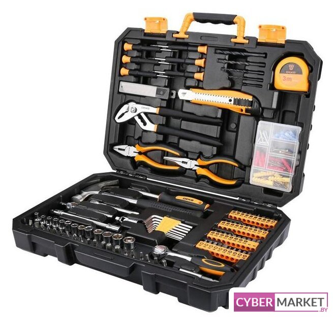 | Комплектация | - отвертки PH000; PH00; PH0; SL2.0; SL2.4; SL3.0;- сверла 2мм; 3мм; 4мм; 5мм; 6мм;- рулетка 3мм;- набор лезвий для ножа строительного (10шт.);- нож строительный 18мм;- ключ переставной 9";- пассатижи 6";- плоскогубцы 6";- отвертка торцевая 6,35мм;- молоток 8";- удлинитель 1/4";- вороток 1/4" T-образный;- универсальный шарнир 1/4";- удлинитель гибкий 1/4";- рукоятка трещоточная 1/4";- торцевые головки 4,0мм; 4,5мм; 5,0мм; 5,5мм; 6,0мм; 7,0мм; 8,0мм; 9,0мм; 10,0мм; 11,0мм; 12,0мм; 13,0мм; 14,0мм;- насадки с разъемами SL4; SL5.5; SL7; PH1; PH2; PH3; PZ1; PZ2; PZ3;- насадки с разъемами H3; H4; H5; H6; H7; H8; T10; T15; T20; T25; T30; T40;- удлинитель для бит 1/4" магнитный;- биты SL3; SL3.5; SL4; SL4; SL5; SL5; SL6; SL6.5; SL7; S1;- биты PH0; PH0; PH1; PH1; PH2; PH2; PH3; PH3; S2; S3;- биты PZ0; PZ0; PZ1; PZ1; PZ2; PZ2; PZ3; PZ3; AD; AD;- биты H3; H4; H5; H6; H7; T10; T15; T20; T25; T30;- ключ шестигранный 1,5мм; 2,0мм; 2,5мм; 3,0мм; 4,0мм; 5,0мм; 5,5мм; 6,0мм;- комплект крепежа по дереву 80шт. |
