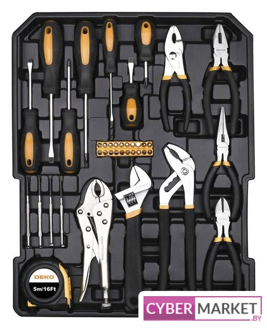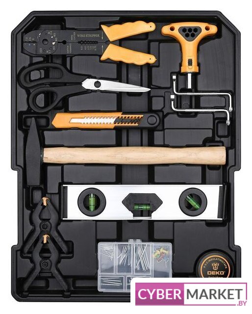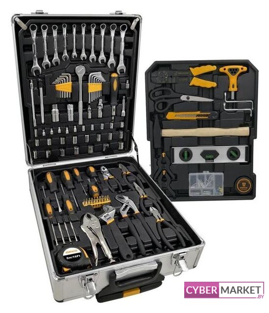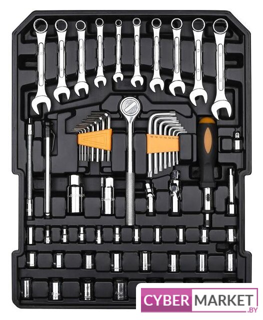 | Комплектация | - Комбинированные ключи 6, 7, 8, 9, 10, 11, 12, 13, 14, 15 мм.- Ключи шестигранные 1.5, 2, 2.5, 3, 3.5, 4, 5, 6 мм.- Разводной ключ 200 мм.- Уровень 250 мм.- Изоляционная лента 5м.- Ножницы 200 мм.- Инструмент для зачистки проводов 200 мм.- Строительный нож 18 мм.- Набор метизов по дереву 76 шт.- Рулетка 5м.- Кусачки 150 мм.- Отвертки с плоским шлицем (SL) 6х38, 4х75, 5х75, 6х100 мм.- Отвертки крестовые (PH) 2х38, 1х75, 2х100 мм.- Ключ Торкс (T) Т10, 15, 20, 25, 27, 30, 40.- Молоток 300 г.- Длинногубцы 150 мм.- Разводной ключ 45 градусов 225 мм.- Пассатижи с фиксатором, прямые губки 175 мм.- Пассатижи 150 мм.- Переходник для головок торцевых 6.35мм.- Струбцина быстрозажимная 100 мм 2 шт.- Отвертки точечные (SL 2.4, 3.0; PH 00, 0)- Головки 6.35 мм: 4, 4.5, 5, 5.5, 6, 7, 8, 9, 10, 11, 12, 13, 14 мм.- Головки 3/8": 6, 7, 8, 9, 10, 11, 12, 13, 14, 15, 16, 17 мм.- Головка 6.35 мм.- Головки свечные 10 мм.: 16, 21 мм.- Шарнир карданный 6.35: 10 мм.- Т-образная отвертка для бит 6.35 мм.- Удлинитель торцевых головок 10*75 мм.- Удлинитель гибкий 6.35*160 мм.- Поворотный адаптер для головок 6.35*10 мм.- Биты 25 мм. 20 шт.- Ключ Торкс Т40, Т50.- Кусачки 150 мм.- Трещотки- Манометр автомобильный- Отвертка для бит с трещоткой |