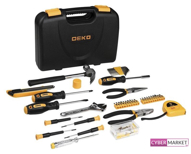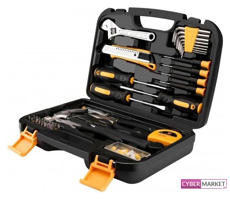 | Комплектация | - ключ разводной 6"- нож строительный 6"- ключ шестигранный 1,5мм; 2,0мм; 2,5мм; 3,0мм; 4,0мм; 5,0мм; 5,5мм; 6,0мм- отвертки PH00; PH0; SL2.4; SL3.0- отвертки PH2х100; SL6х100mm- отвертка торцевая 6,35мм- отвертка индикаторная 100-220В- плоскогубцы 6"- пассатижи 6"- рулетка 3м- молоток 8"- отбойник резиновый для молотка- биты SL3; SL3,5; SL4; SL4; SL5; SL5; SL6; SL6,5; SL7; S1; PH0; PH0; PH1; PH1; PH2; PH2; PH3; PH3; S2; S3комплект крепежа по дереву 57шт. |