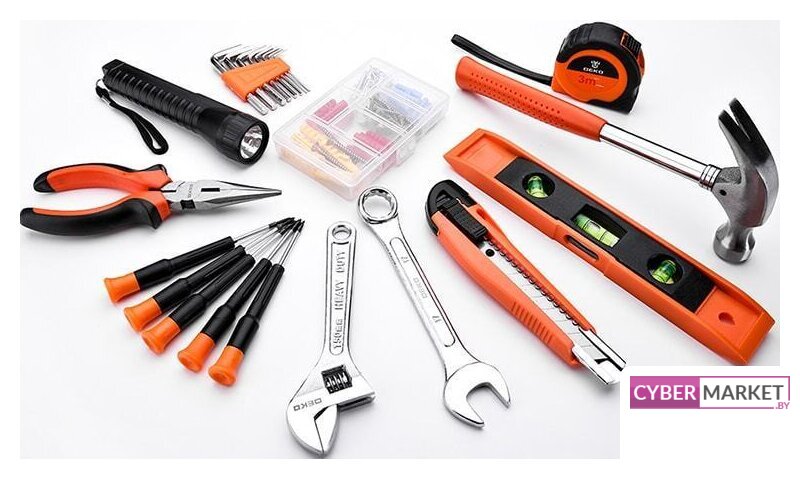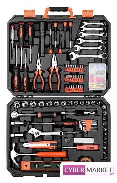 | Комплектация | - отвертка индикаторная 100-220В- отвертки PH1х75; PH2х100; SL5х75; SL6х100мм- фонарик- пассатижи 6"- плоскогубцы 6"- отвертки PH000; PH00; PH0; SL2.4; SL3.0- биты SL3; SL4; SL5; SL6; SL6; SL7- биты PH0; PH1; PH2; PH2; PH2; PH3; PH3- биты PZ0; PZ1; PZ2; PZ2; PZ2; PZ3; PZ3; AD- биты H3; H4; H5; H6; T10; T15; T20; T25; T30- ключи 8; 10; 12; 13; 14; 17мм- муфта 1/4"- адаптор 1/4"x3/8"- 1/4" торцевые головки 4,0мм; 5,0мм; 6,0мм; 7,0мм; 8,0мм; 9,0мм; 10,0мм; 11,0мм; 12,0мм; 13,0мм- 3/8" торцевые головки 10,0мм; 11,0мм; 12,0мм; 13,0мм; 14,0мм; 15,0мм; 16,0мм; 17,0мм; 19,0мм; 20,0мм; 21,0мм; 22,0мм- 3/8" головки свечные 16мм; 21мм- удлинитель 3/8" длина 3"- универсальный шарнир 3/8"- рукоятка трещеточная 3/8"- рукоятка отверточная 1/4"- ключ шестигранный 1,5мм; 2,0мм; 2,5мм; 3,0мм; 4,0мм; 5,0мм; 5,5мм; 6,0мм- отвертка торцевая 6,35мм- ключ разводной 6"- набор лезвий для ножа строительного (10шт.)- нож строительный 18мм- молоток 8"- уровень9"- рулетка 3м- удлинитель для бит 1/4" магнитный- комплект крепежа по дереву 104шт. |