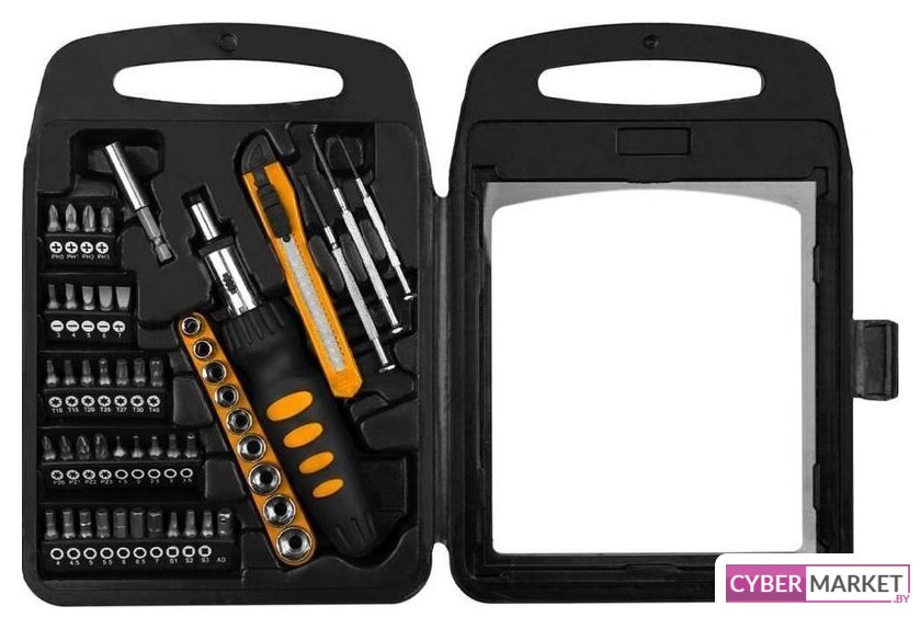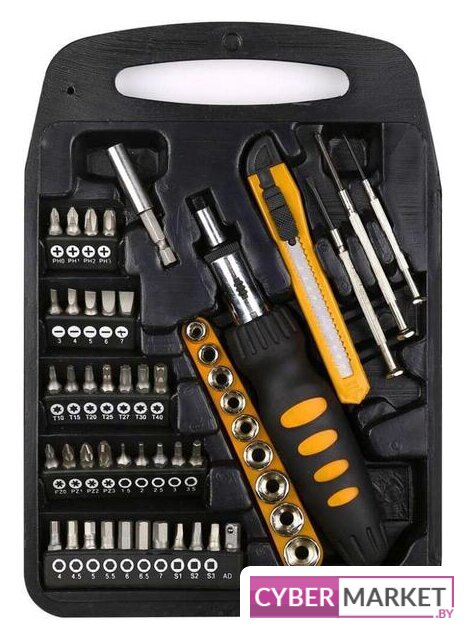 | Комплектация | - Биты 36 шт.- Точечные отвертки SL: 2.4, 3.0; PH0- Отвертка для бит 1/4".- Нож строительный.- Головки 1/4": 5, 6, 7, 8, 9, 10, 11, 12, 13 мм. Удлинитель магнитный.- Кейс |
