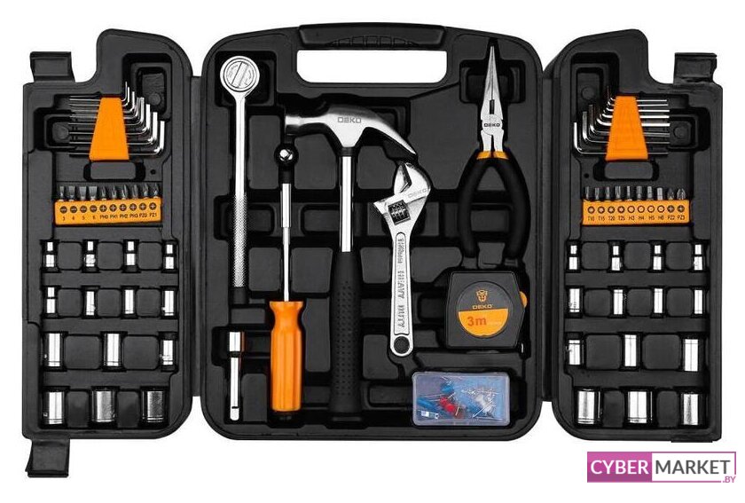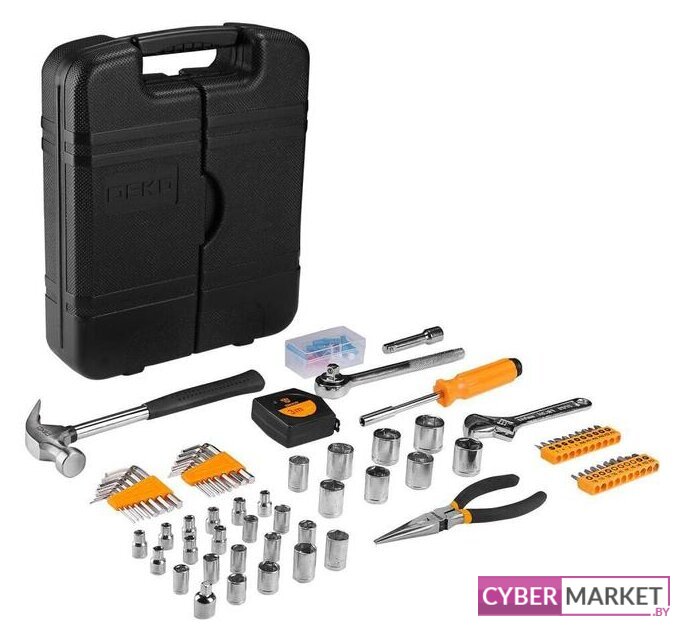 | Комплектация | - 16 шт шестигранные ключи 1.5-6мм,1/16-1/4"- 20 шт биты 25L: SL3,4,5,6,PH0,1,2,3, PZ0,1,2,3,T10,15,20,25,H3,4,5,6- 18 шт торцевые головки 1/4": 4,4.5,5,5.5,6,7,8,9,10мм,- 5/32,3/16,7/32,1/4,9/32,5/16,11/32,3/8,7/16- 10 шт торцевые головки 3/8": 12,13,14,15,17мм,1/2,9/16,5/8,3/4,11/16- 1 шт адаптер 3/8"x1/4"- 1 шт удлинитель 3/8"x3"- 1 шт трещотка 3/8"- 1 шт держатель бит 6.35мм- 1 шт молоток-гвоздодер 8 унций- 1 шт разводной ключ 6"- 1 шт длинногубцы 6"- 1 шт рулетка 3мм- 80 шт крепеж- Кейс |