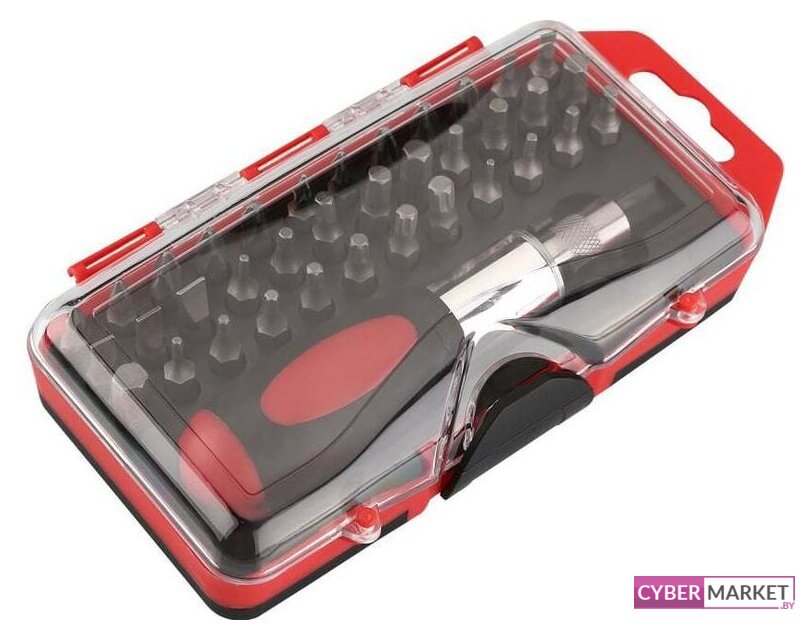 | Комплектация | 5 х Phillips: 0-1-2*2-35 х Pozidrive: 0-1-2*2-35 х Slotted: 3мм-4мм-5мм-6мм-7мм10 х Hex: 2мм-3мм-4мм-5мм-6мм & H1/8"-5/32"-3/16"-7/32"-1/4"7 х Torx: 10мм-15мм-20мм-25мм-27мм-30мм-40мм4 х Square: 0-1-2-31 х Храповая отвертка |