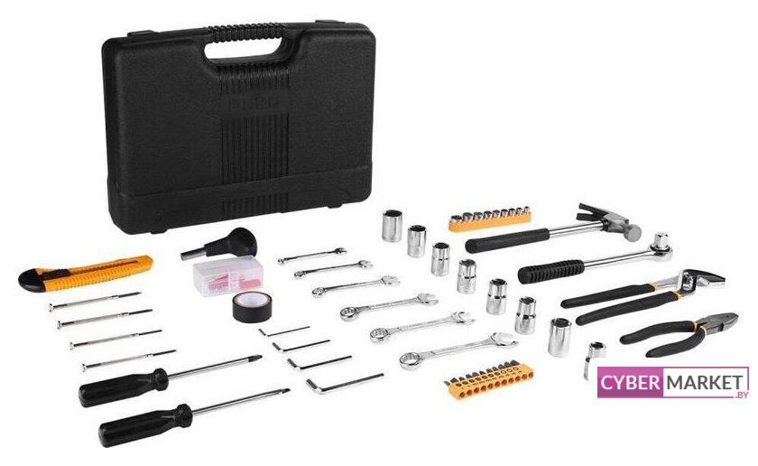 | Комплектация | - 4 шт шестигранные ключи 3,4,5,6мм;- 1 шт держатель для бит 6,35 мм;- 1 шт изолента 3м;- 6 шт комбинированные ключи 6,8,10, 12,13,14 мм;- 11 шт биты 25L;- 1 шт переставной ключ;- 2 шт отвертки PH2x100, SL6x100мм;- 9 шт 1/4 "головки 5,6,7,8,9,10,11,12,13 мм;- 8 шт 1/2 "головки 10,11, 12,13,14,15,17,19 мм;- 1 шт молоток;- 1 шт строительный нож 18 мм;- 1 шт ключ с трещоткой 1/2";- 4 шт прецизионные отвертки PH00,0, SL2.4,3.0;- 1 шт плоскогубцы 6";- Кейс. |