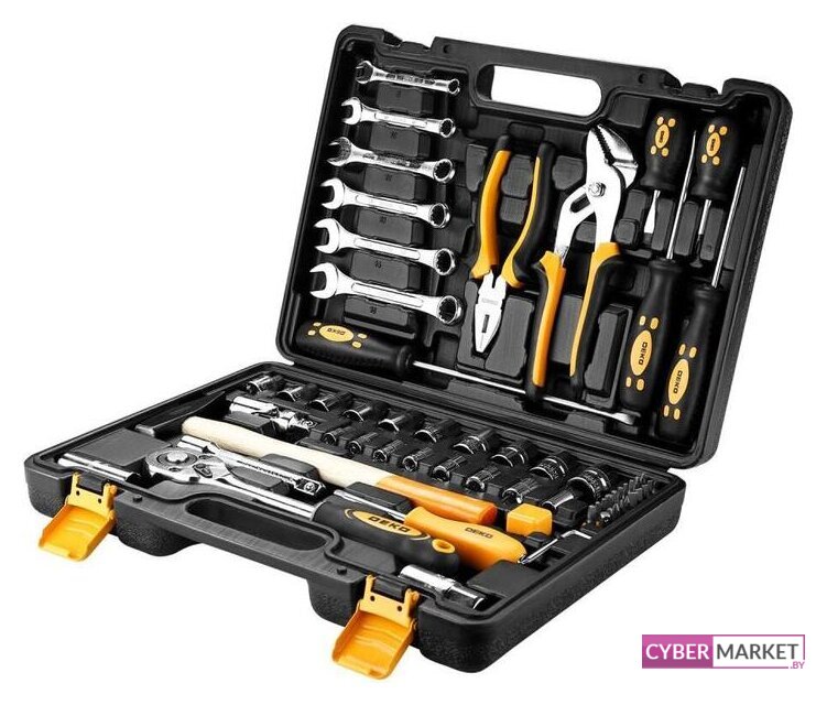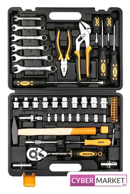 | Комплектация | - 6 шт. комбинированный ключ,- 1 шт. плоскогубцы,- 1 шт. переставной ключ,- 5 шт. отвертка,- 1 шт.1/4 "соединитель,- 7 шт. 1/4 " головка,- 10 шт. 1/2 " головка,1 шт. универсальный шарнир,- 1 шт. удлиннитель,- 2 шт. торцевая головка,- 3 шт. шестигранный ключ,- 1 шт. трещотка,- 1 шт. держатель головок,- 1 шт. молоток,- 1 шт. резиновая насадка на молото,- Кейс. |