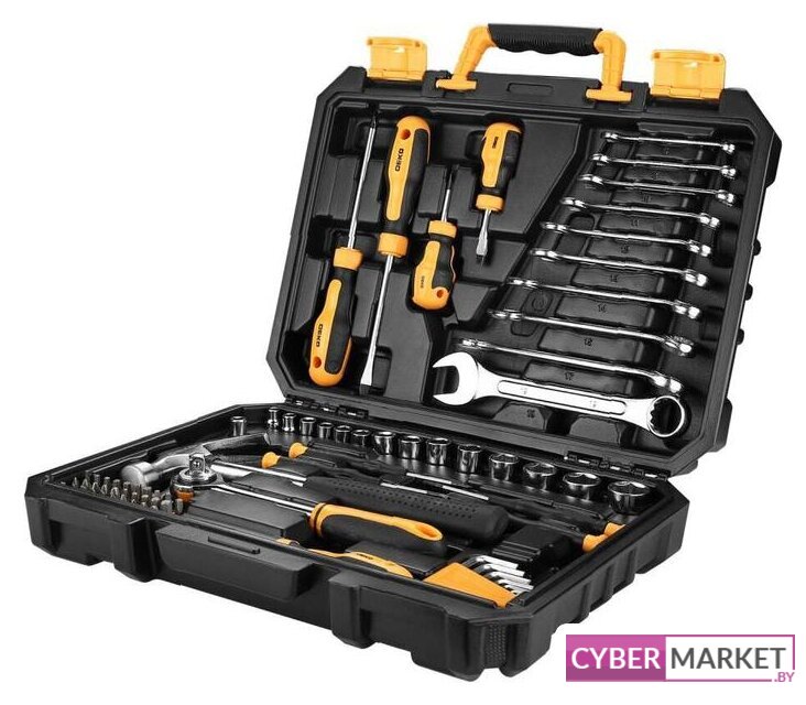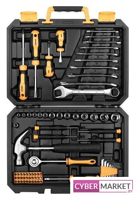 | Комплектация | - 4 шт отвертка SL6x38, 6x100, PH2x38, 2x100 мм;- 10 шт комбинированный ключ 6, 8, 10, 11, 12, 13, 14, 15, 17, 19 мм;- 1 шт соединитель 1/4 ";- 6 шт головка 1/4": 5, 6, 7, 8, 9, 10 мм;- 8 шт головка 3/8": 10, 11, 12, 13, 14, 15, 17, 19 мм;- 4 шт прецизионная отвертка SL2.4, 3.0, PH00, 0;- 1 шт молоток;- 1 шт трещотка 3/8";- 8 шт шестигранный ключ 1.5-6 мм;- 30 шт биты: SL3, 4, 5, 6, 6, PH0, 1, 2, 2, 3, PZ0, 1, 2, 2, 3, H2, 3, 4, 5, 6, S1, 2, 3, T10, 15, 20, 25, 27, 30, 35; 1 шт держатель головок. |