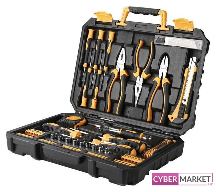 | Комплектация | - 5 шт. прецизионные отвертки- 1 шт. комбинированные клещи- 1 шт. плоскогубцы с длинным носом- 1 шт. бокорезы- 1 шт. строительный нож- 10 шт. лезвия для ножа- 1 шт. измерительная лента- 1 шт. разводной ключ- 7 шт. шестигранные ключи- 1 шт. держатель для бит- 2 шт. отвертки- 9 шт. головки торцовые- 42 шт. биты |