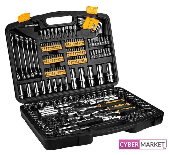 | Комплектация | - 12 шт шестигранный ключ: 1.5х2, 2х2, 2.5х2,3,4,5,6,8,10мм- 10 шт биты с торцевой головкой: 4,5,6,7,8,9,10,11,12,13мм- 6 шт комбинированные ключи: 10,11,12,13,14,15мм- 60 шт биты (25Lx6.35мм): PH1,1,2,2,2,2,3,3,S1,1,2,2,2,2,3,3; PZ1,1,2,2,2,2,3,3,SL3,3,4,4,4,5,5,6,6,6,7,7; H2,2,3,3,4,4,5,5,6,6,T10,10,15,15,20,20,25,25,27,27,30,30,40,40- 16 шт биты (25Lx8мм): SL8,10,12,PH3,4,PZ3,4,T40,45,50,55,60; H7,8,10,12- 18 шт торцевые головки 1/4": 4,4.5,5,5.5,6,7,8,9,10,11,12,13,14мм, E4,E5,E6,E7,E8- 10 шт торцевые головки 3/8": 8,9,10,11,12,13,14,15,17,19мм- 22 шт торцевые головки 1/2": 10,11,12,13,14,15,16,17,18,19,20, 21,22,24мм, E10,E11,E12,E14,E16,E18,E20,E24- 8 шт глубокие торцевые головки 1/4": 6,7,8,9,10,11,12,13мм- 5 шт глубокие торцевые головки 1/2": 14,15,17,19,22мм- 2 шт вороток: 1/4",1/2"- 3 шт удлинитель: 1/4"x2,4", 1/2"x5"- 1 шт гибкий вал 1/4"- 2 шт универсальный шарнир: 1/4",1/2"- 1 шт держатель головок 1/4"- 3 шт гаечный ключ с трещоткой: 1/4",3/8",1/2"- 2 шт свечная головка 1/2"x 16, 21мм- 2 шт муфта: 1/4" x 6.35мм, 1/2" x 8мм- 17 шт торцевые биты: SL4,5.5,7,PH1,2,PZ1,2; H3,4,5,6,T8,10,15,20,25,30 |