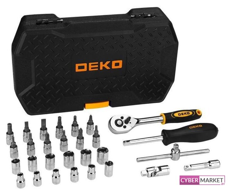 | Комплектация | 12 шт. головки-биты 1/4" SL4,5.5,7, PH1,2,3, H4,5,6, T10,15,2012 шт. головки 1/4" 4,4.5,5,5.5,6,7,8,9,10,11,12,13 мм1 шт. ключ с трещоткой 1/4" 1 шт. держатель для головок 1/4"1 шт. вороток 1/4"1 шт. универсальный шарнир 1/4"1 шт. удлинитель 1/4"x 2" |